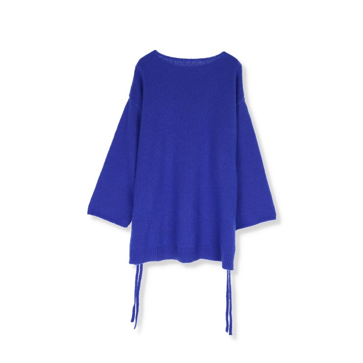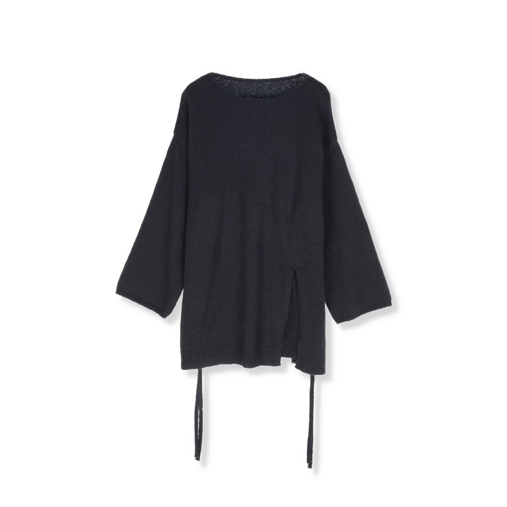 ふんわりとした糸で編み上げたチュニック丈ニット。