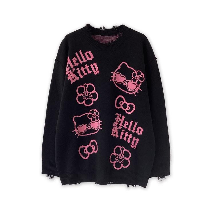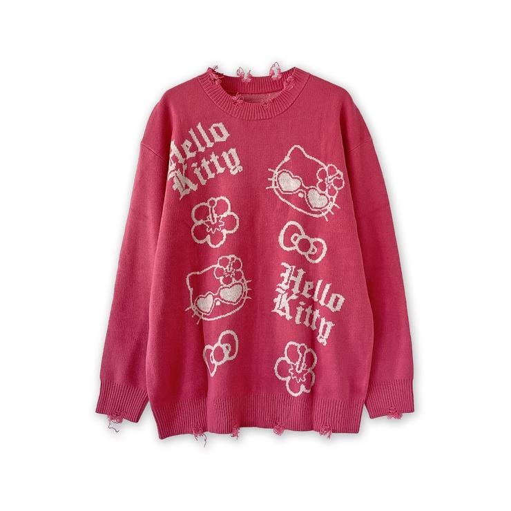 ハローキティのダメージ加工のデザインがかっこいいニットトップスが登場。