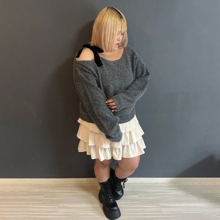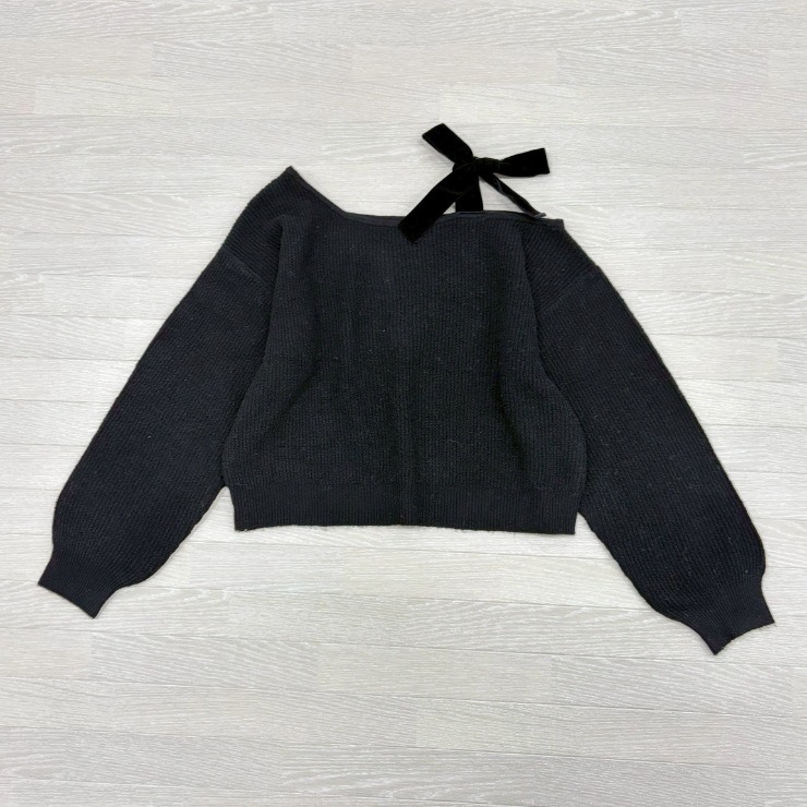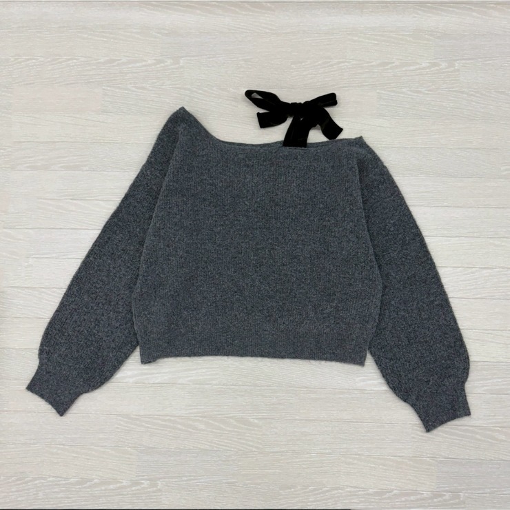 ワンポイントの肩リボンが視線を惹く、上品フェミニンなニットトップス♪