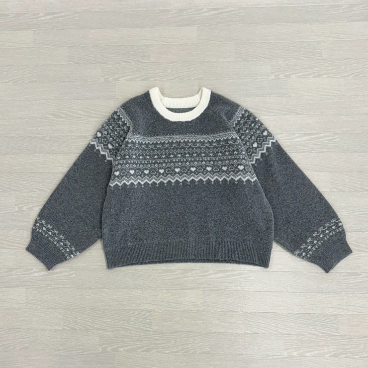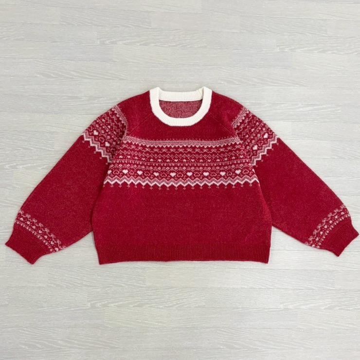 冬らしいノルディック柄が目を引くあたたかみのあるニットプルオーバー。
