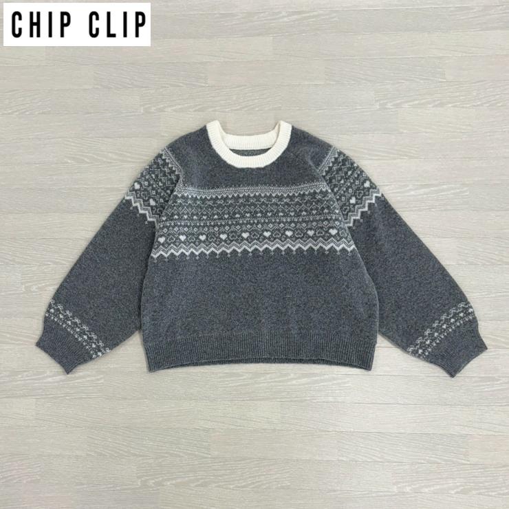 レディース ノルディック柄ニットプルオーバー(あいちゃん×CHIP CLIP)