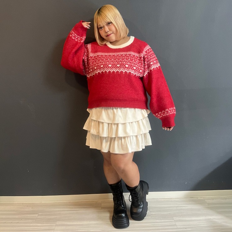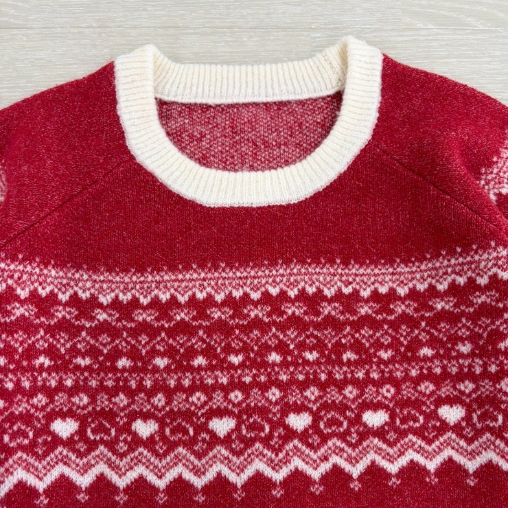 レディース ノルディック柄ニットプルオーバー(あいちゃん×CHIP CLIP) レッド 201 レッド 201