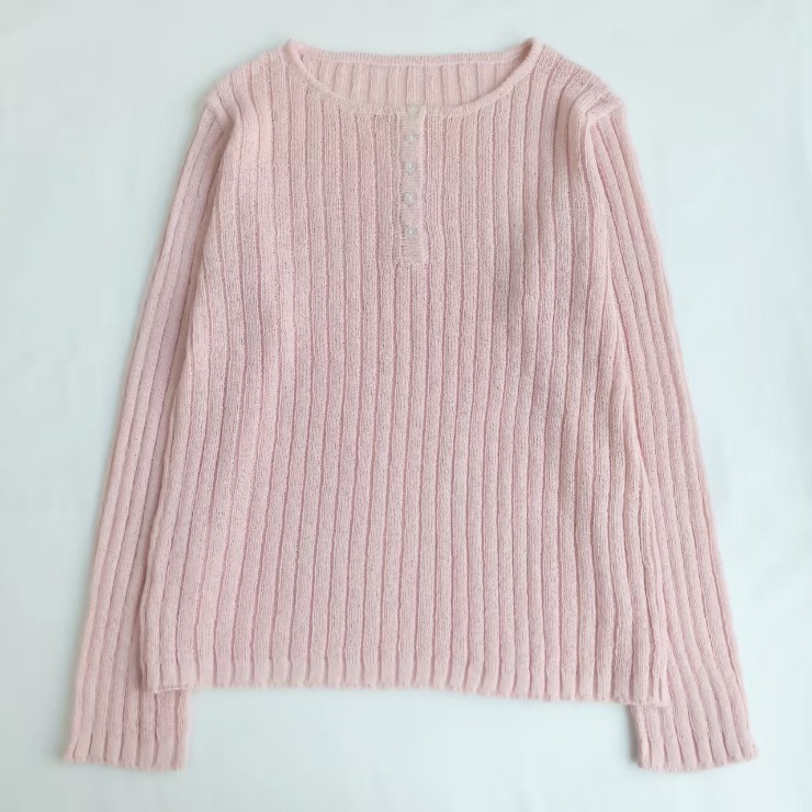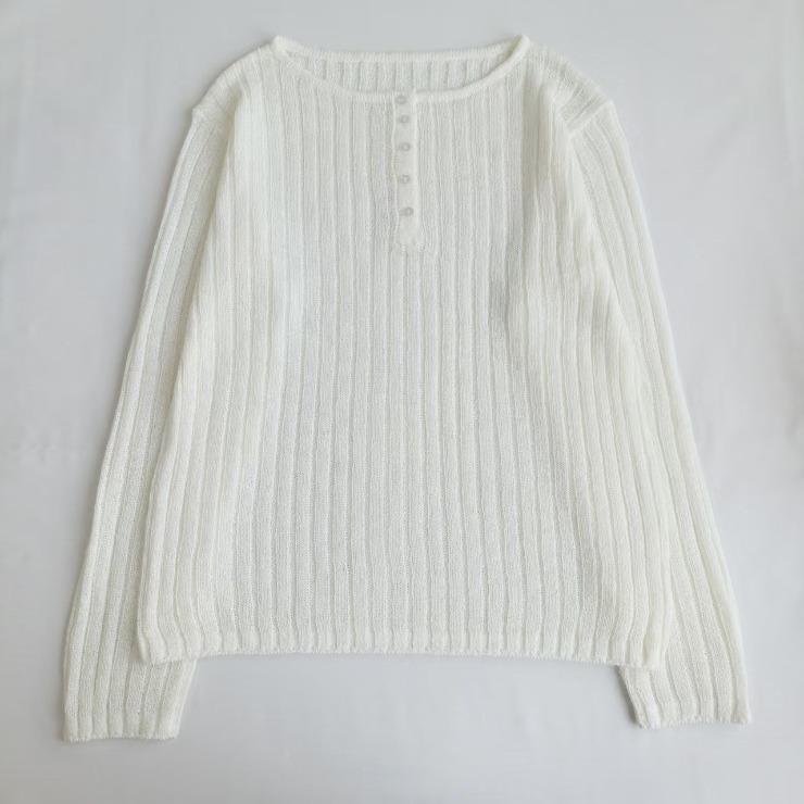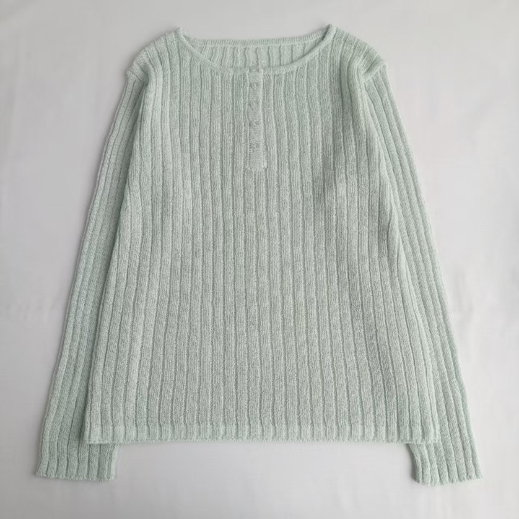 程よい透け感とヘンリーネックがトレンド感ある仕上がりに。