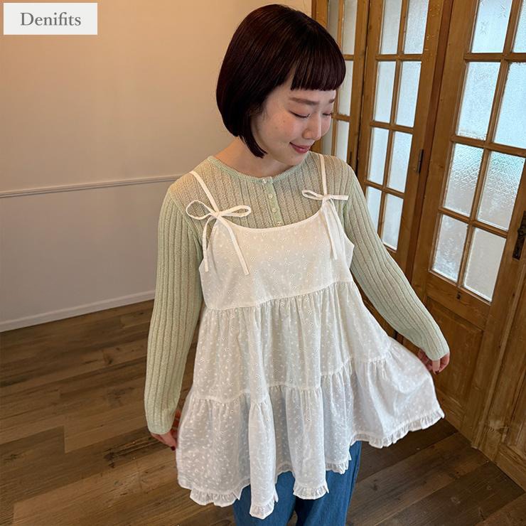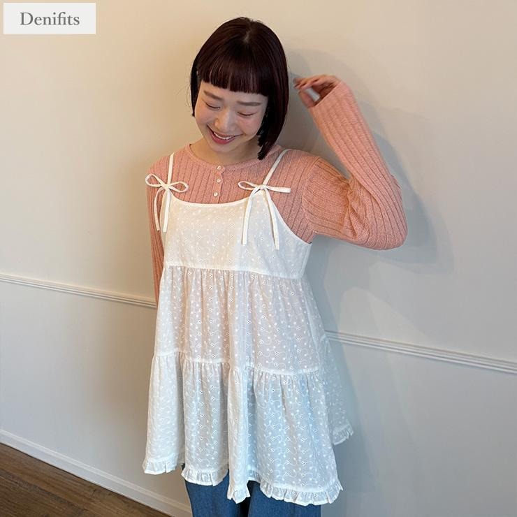 インナーにキャミをレイヤードした着こなしはもちろんキャミワンピのインナーとしても着回しが効くアイテムです。
