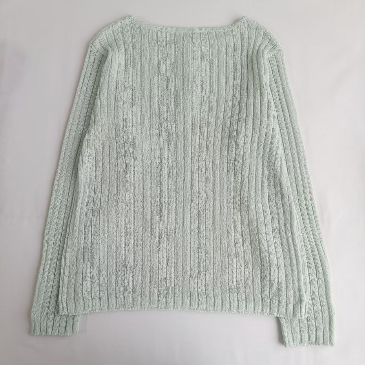 リブが縦ラインを強調し、伸縮性があり着やすい一枚。