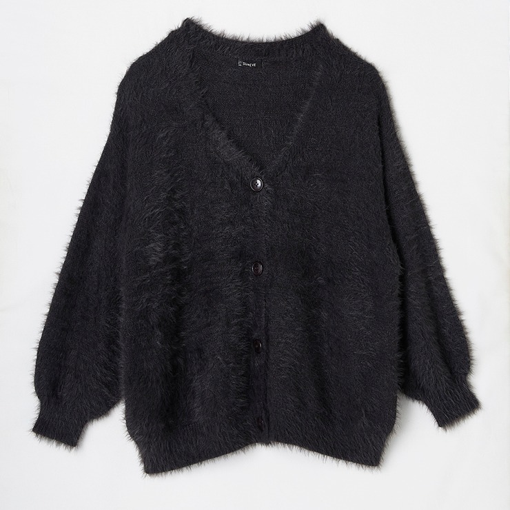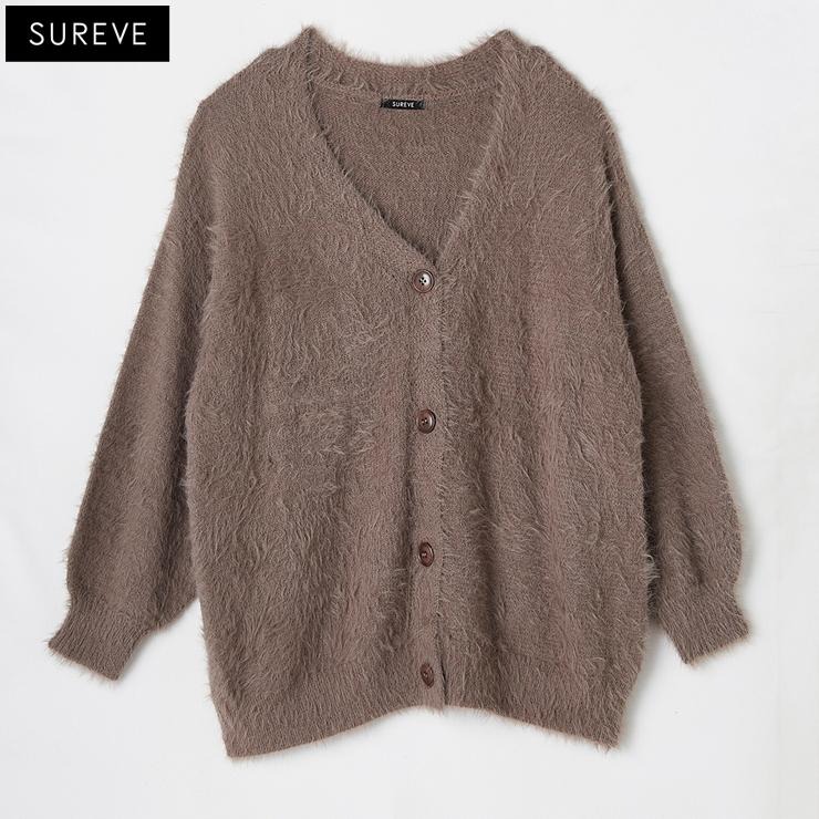 ふんわりとしたシャギー素材が特徴のニットカーディガン。