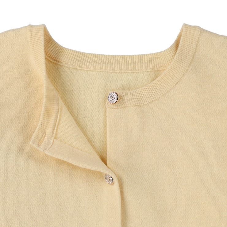 柔らかいカラーが華やかな印象を演出するニットカーディガン。