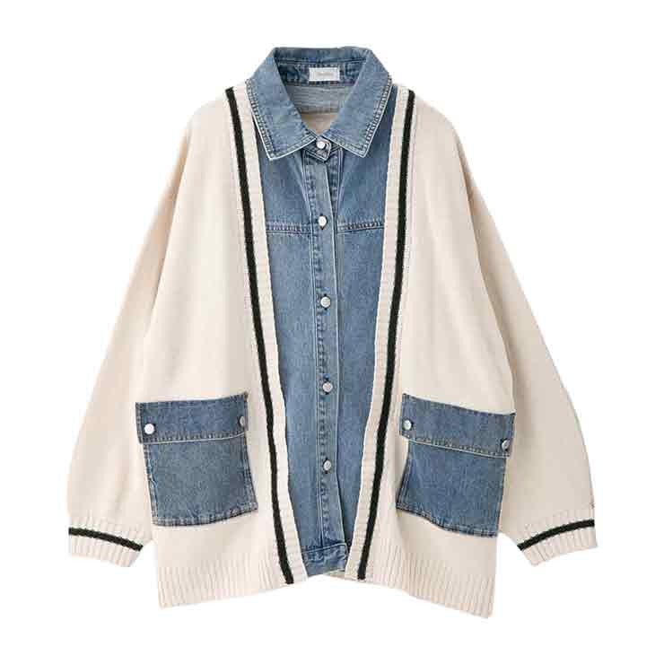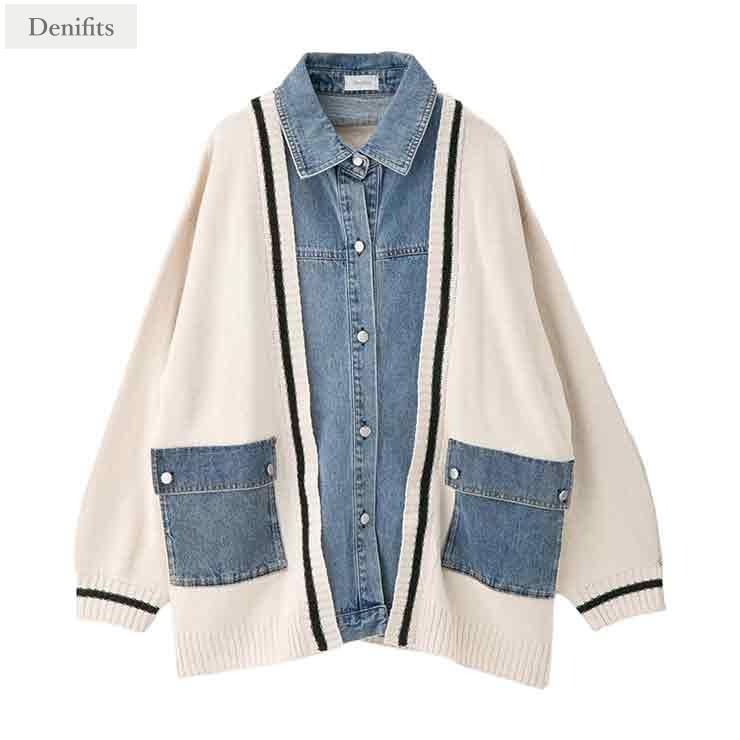 レディース デニムシャツドッキングニットカーディガン(Denifits)