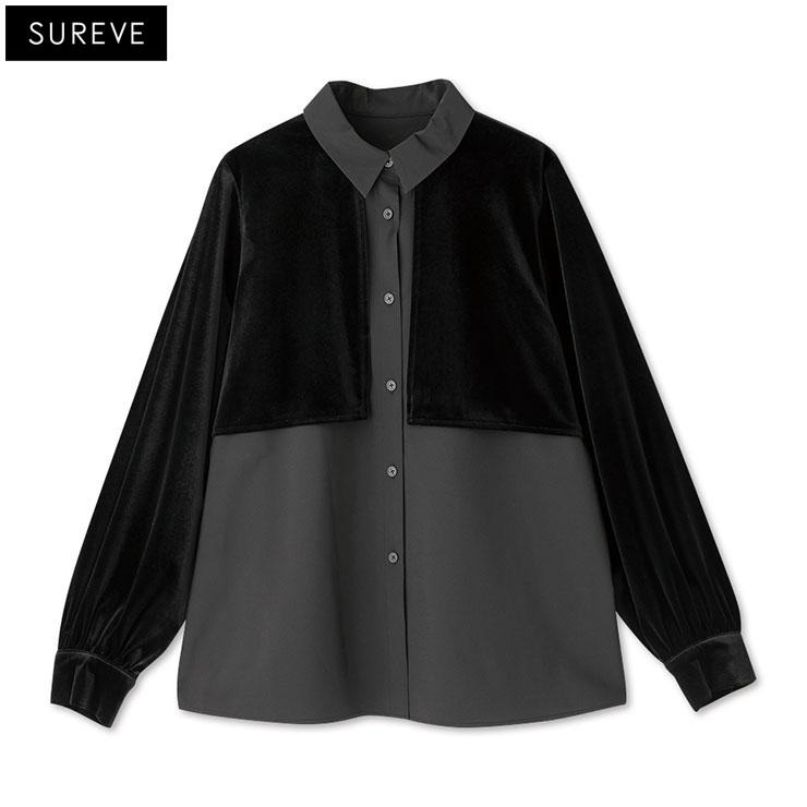ヨークと袖部分をベロア素材で切替えており、さりげない光沢感がラグジュアリーな雰囲気を醸し出してくれます。