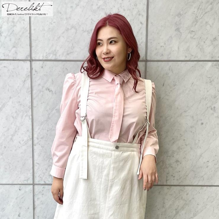 レディース【2L~4L】 ネクタイ付きシャツ(Derelikt×安藤うぃ) ライトピンク 310 ライトピンク 310