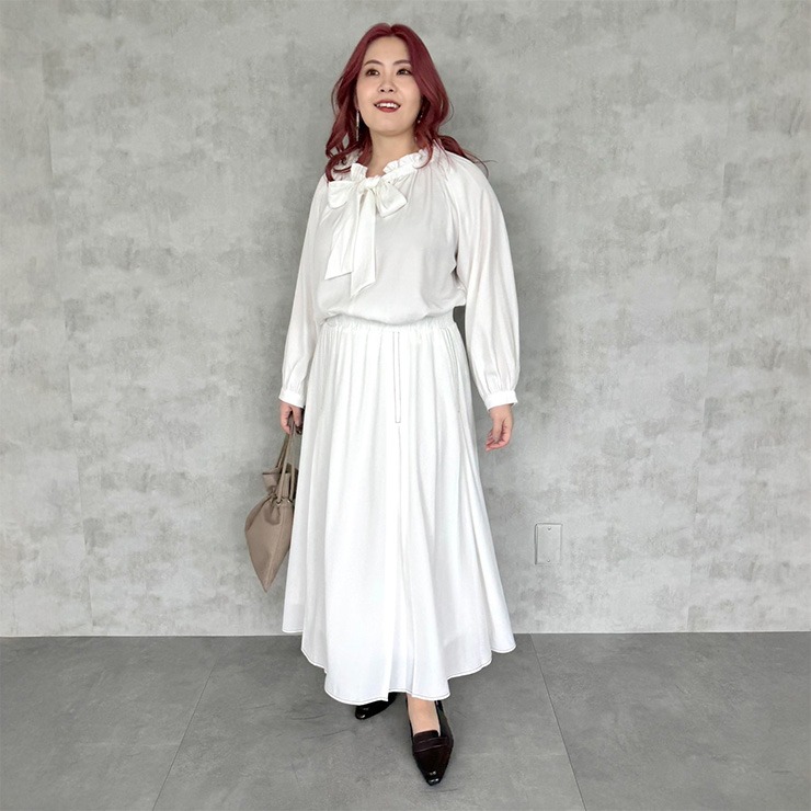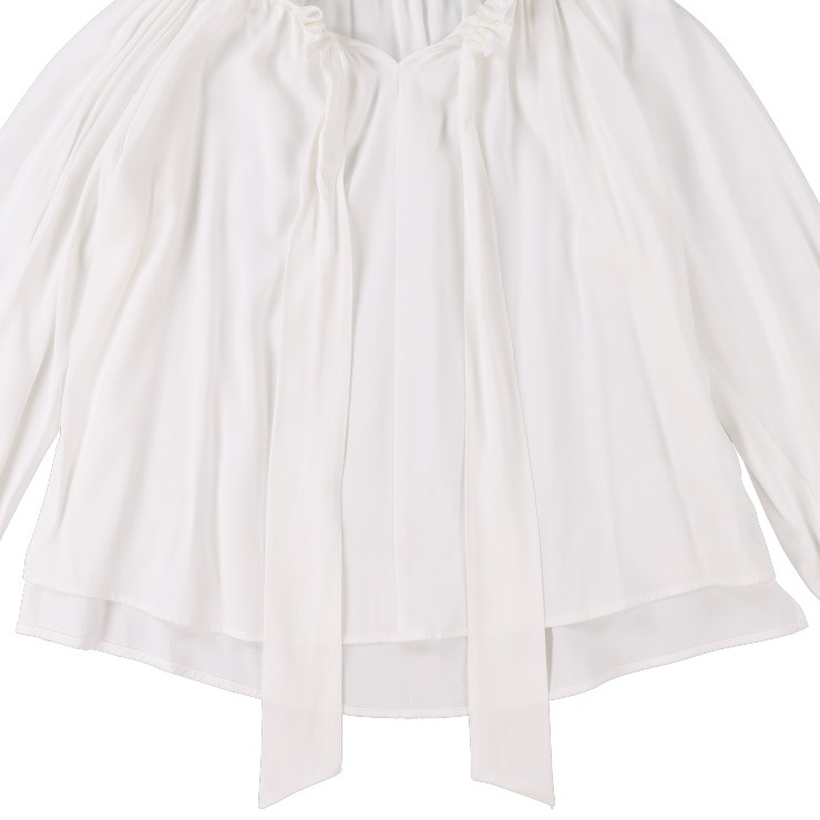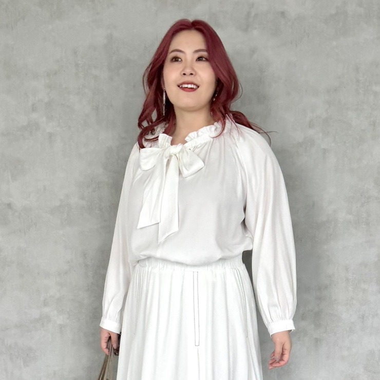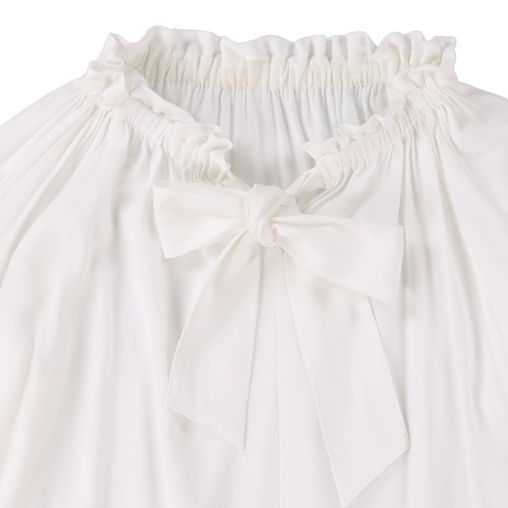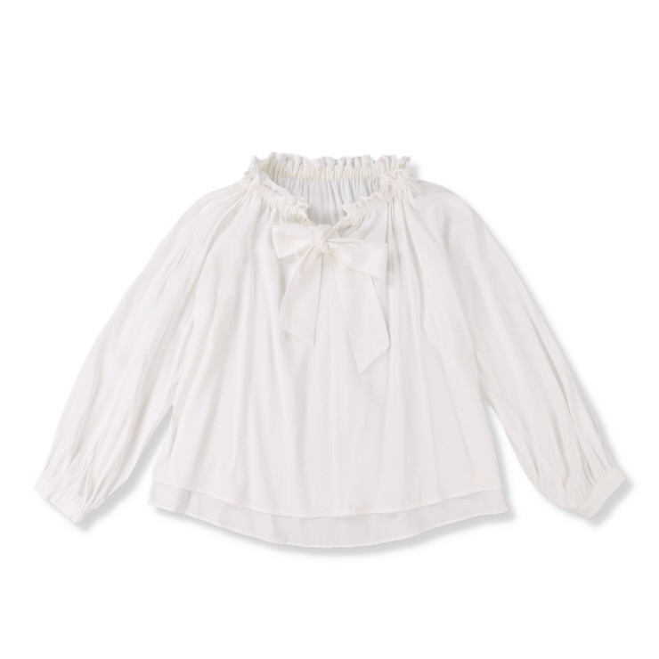 大きめリボンがアクセントになっており、爽やかさと大人っぽさを両立した着回し力のある一枚。