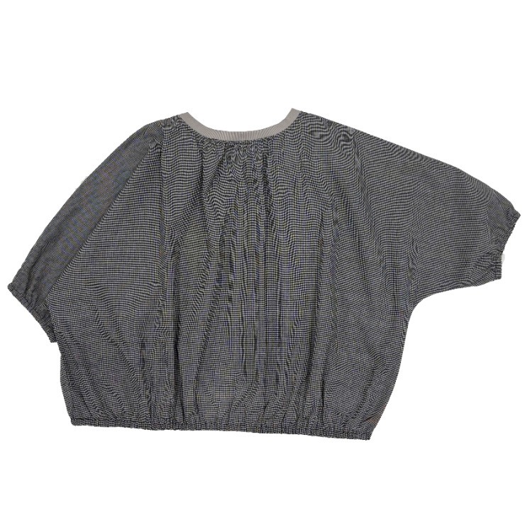 生地は凹凸感のある綿混素材を使用しているので肌にくっ付きにくく、細かい千鳥柄が入っていてベーシックながらカジュアル感も演出します。