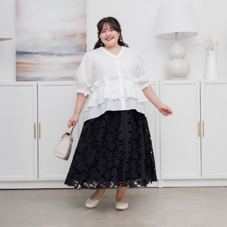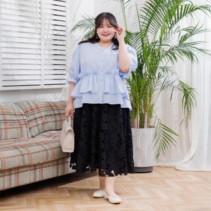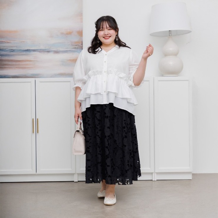 レディース【2L~4L】 ウエストフリルブラウス(RagOut×masami)