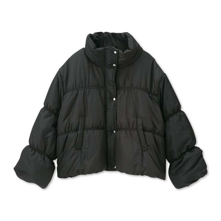 全体にシャーリングを入れることで、着ぶくれして見えず着痩せ効果でシャープな印象に♪