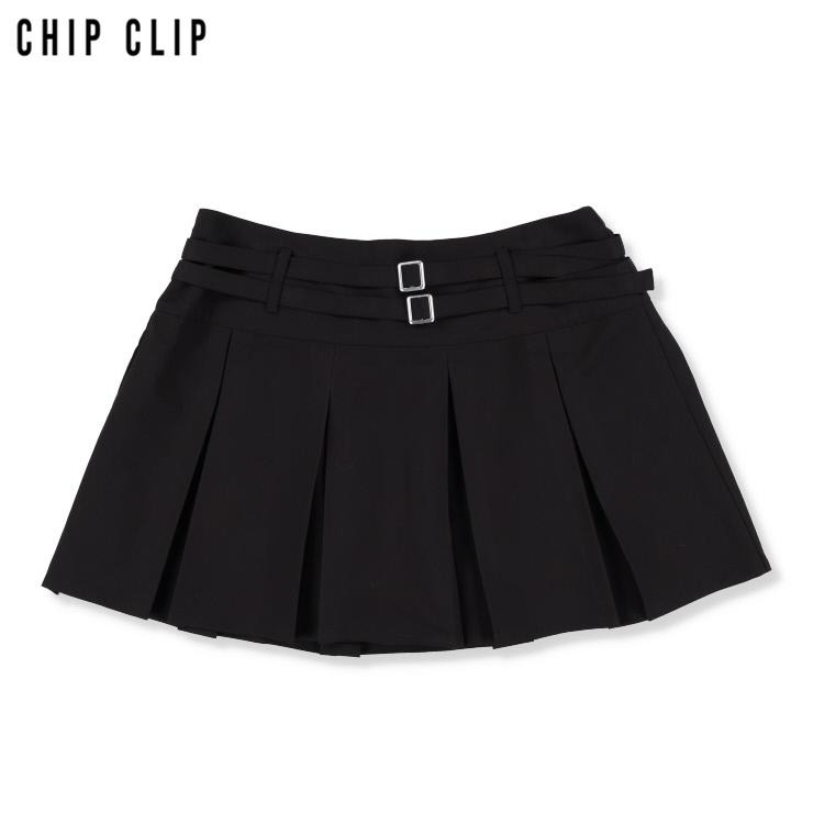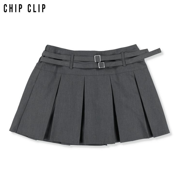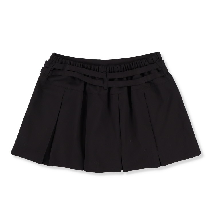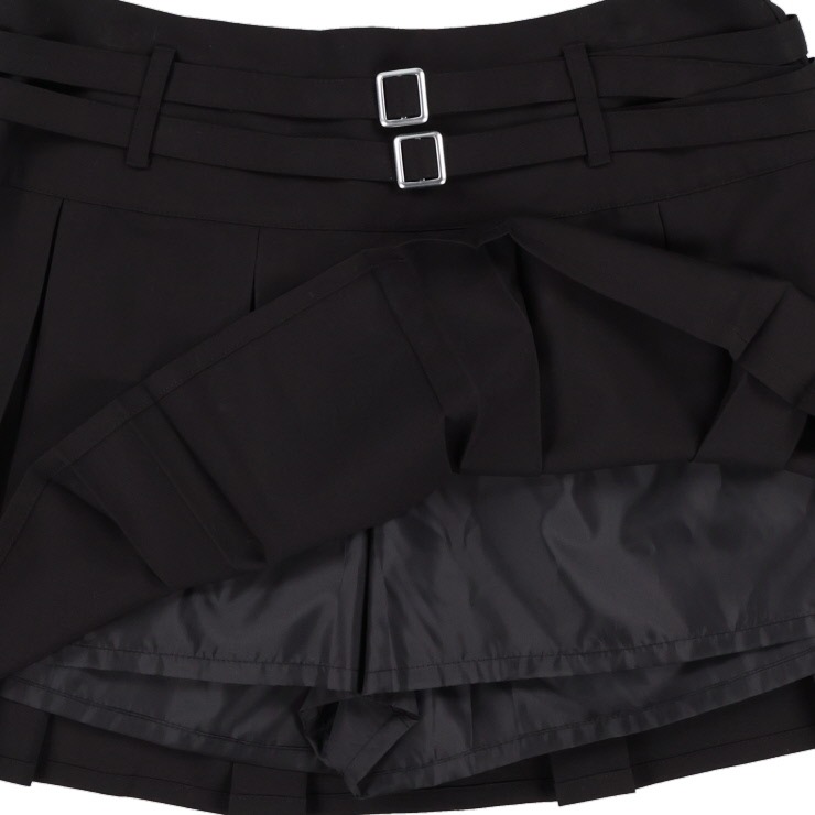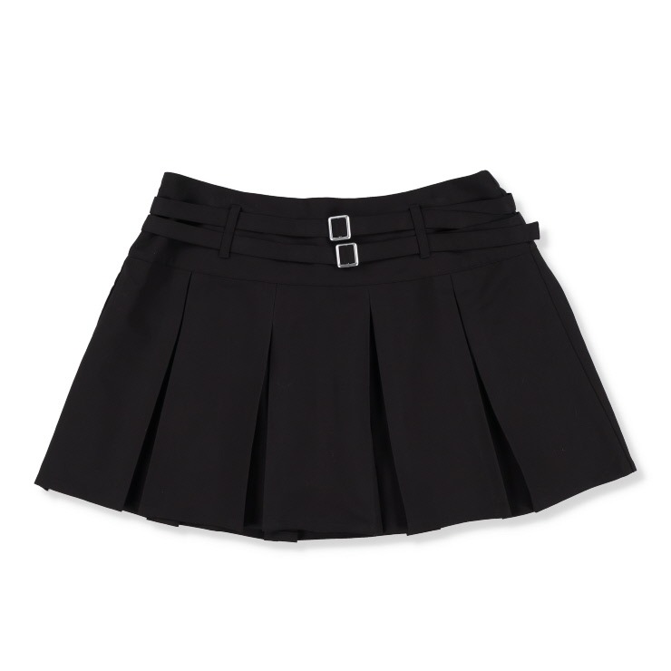ウエストのダブルベルトが目を引くプリーツスカート。