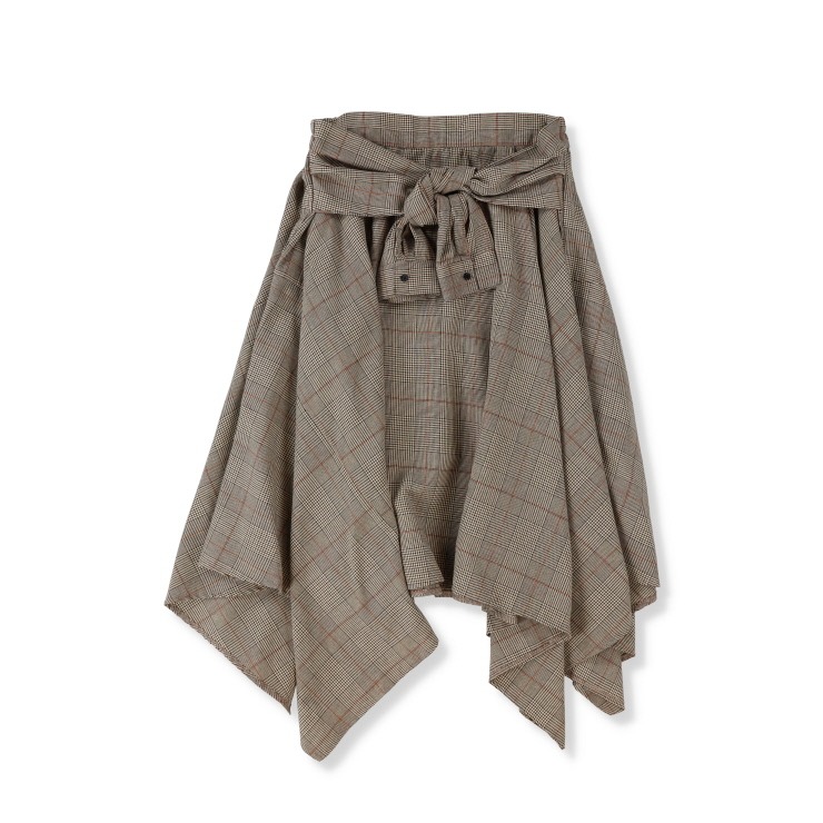 チェックシャツを腰に巻いているようなデザインのスカートです。