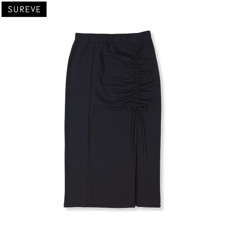 デザインポイントは2つ!大きく存在感のあるドロストと、大きめに入ったスリットでいつものスカートコーデを一気に今っぽくしてくれること間違いなし!