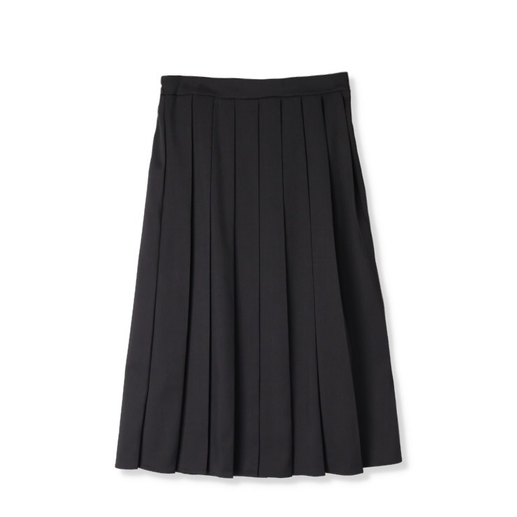 やや太幅のプリーツが今年らしいロングプリーツスカート。