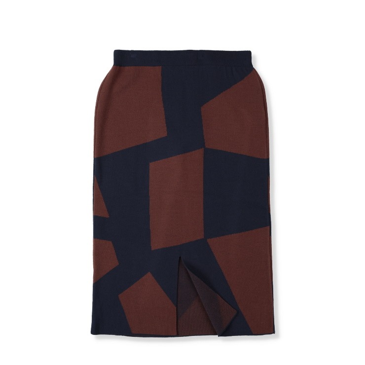 おしゃれな幾何学模様のジャカードニットナロースカートです。