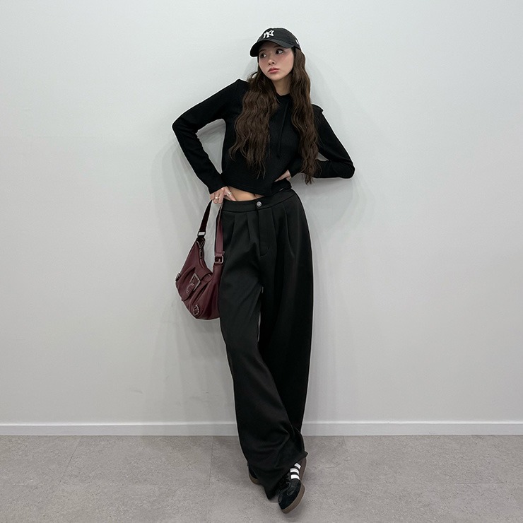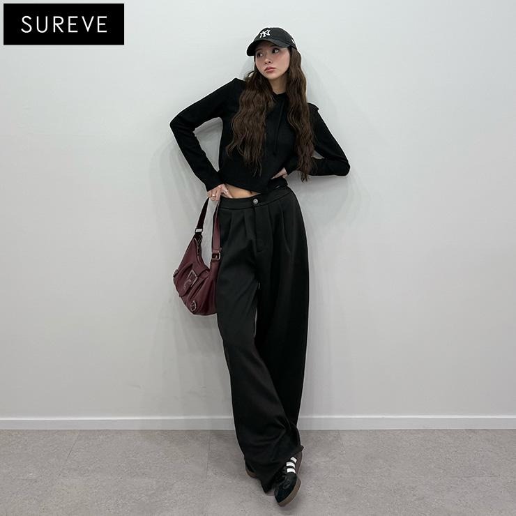 タック入りのワイドシルエットが、カジュアルながらもきれいめな印象をプラス。