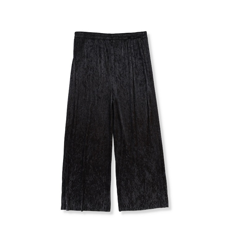 プリーツ素材はよく伸びて楽ちん!なのに、ボディラインをひろいにくく、縦ラインで細見えする嬉しい素材。