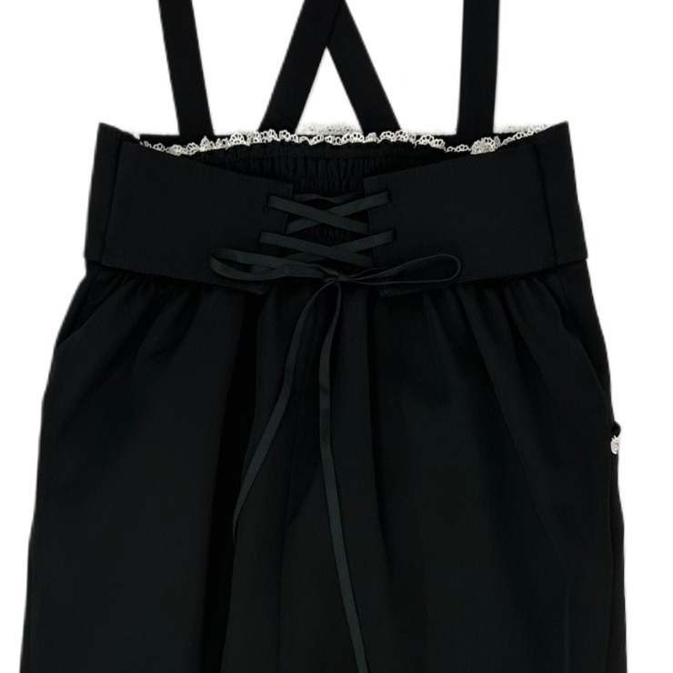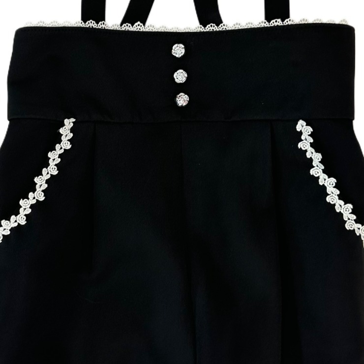 バラモチーフのボタンやレースとウエストの編み上げでかわいさプラス。