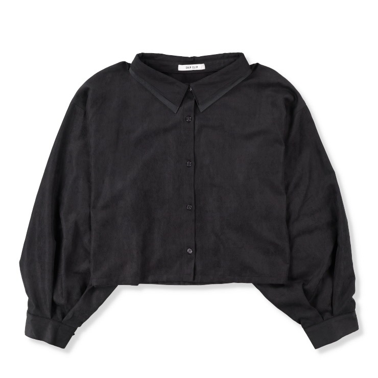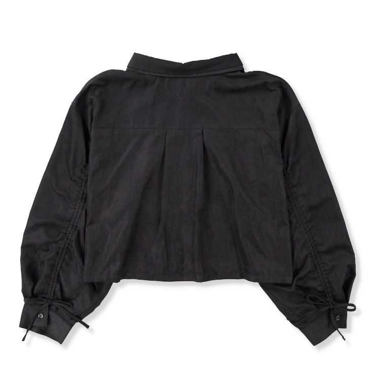 袖部分のドロストデザイン、配色の2枚襟がポイントのシャツは、単品でも使いやすいです!
