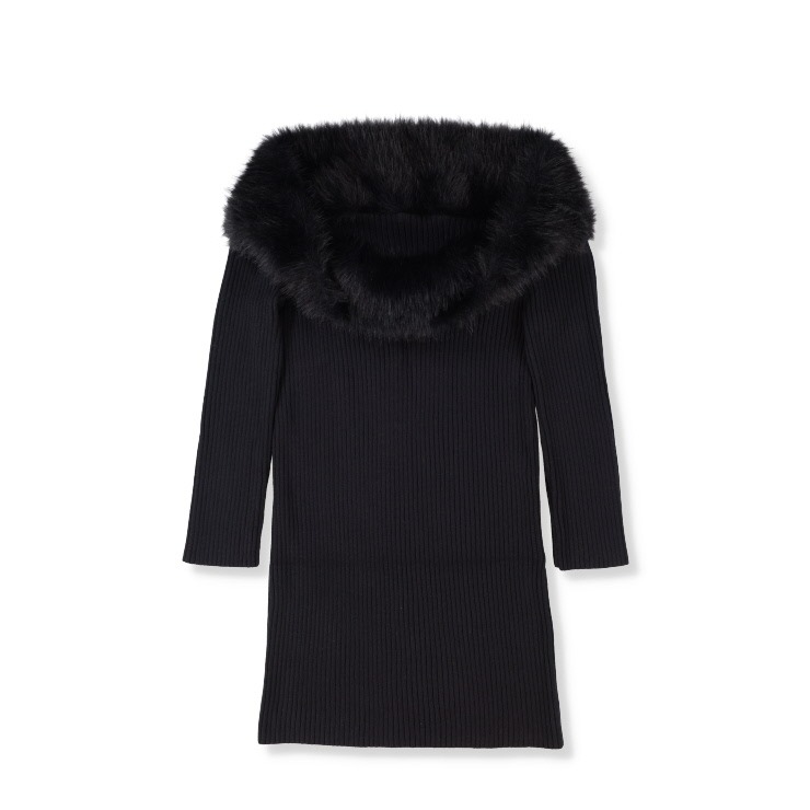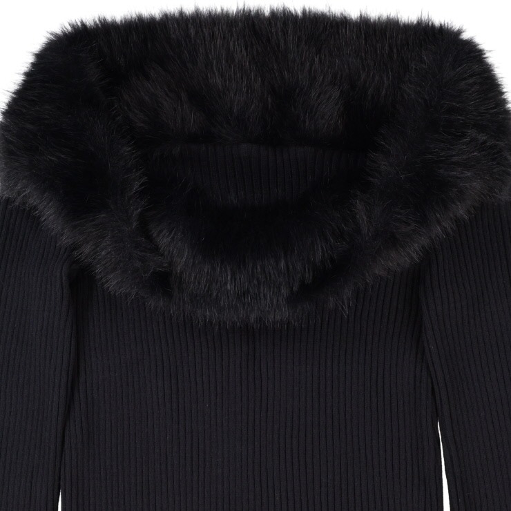 大胆なオフショルとファーデザインがギャルなムードを演出。