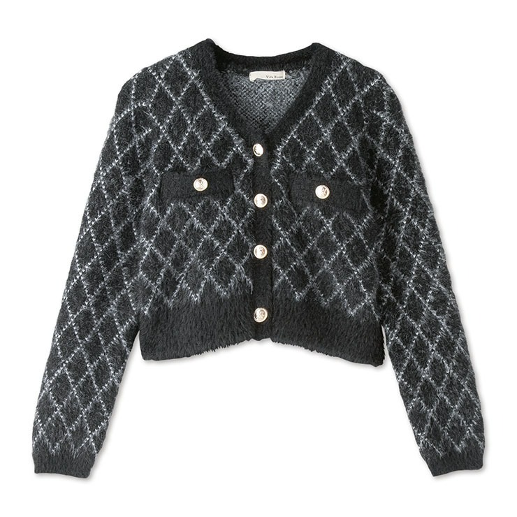 フェザーヤーンのダイヤ柄が可愛いニットセットアップ。