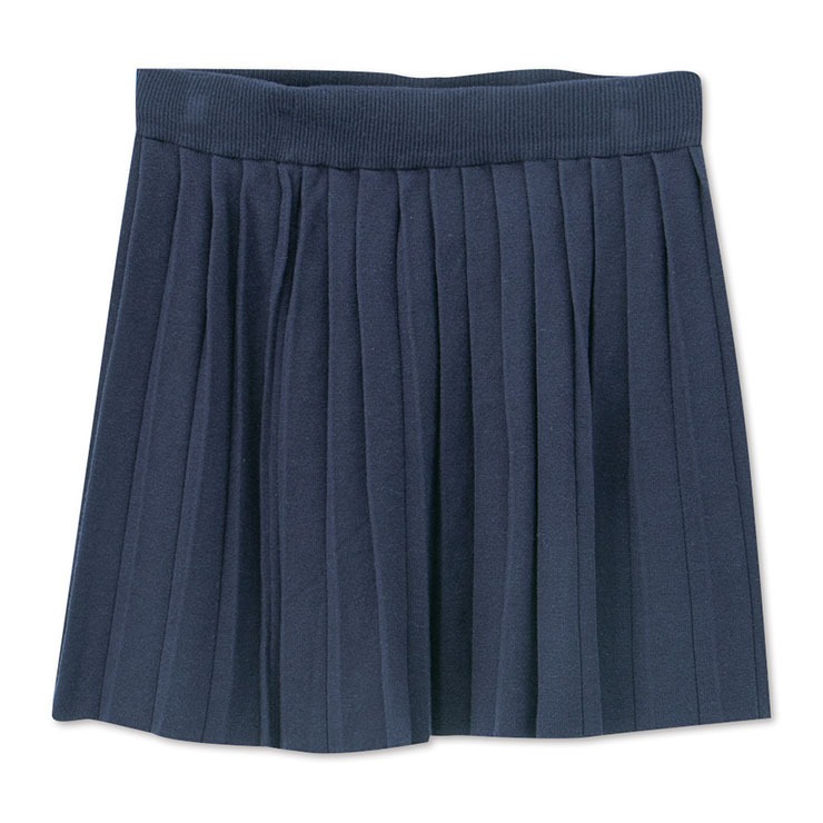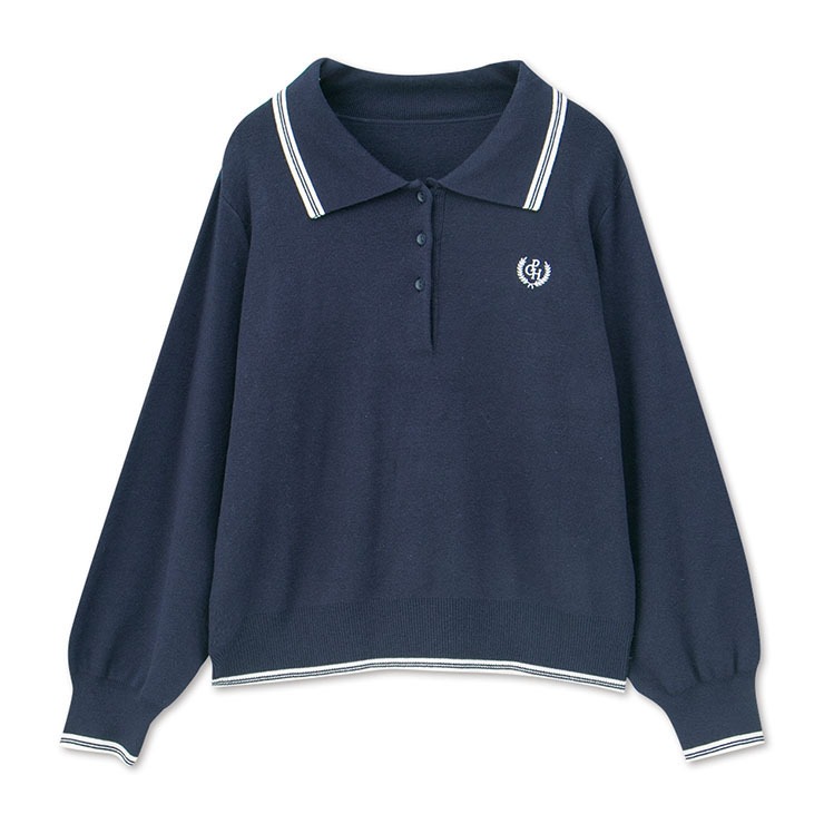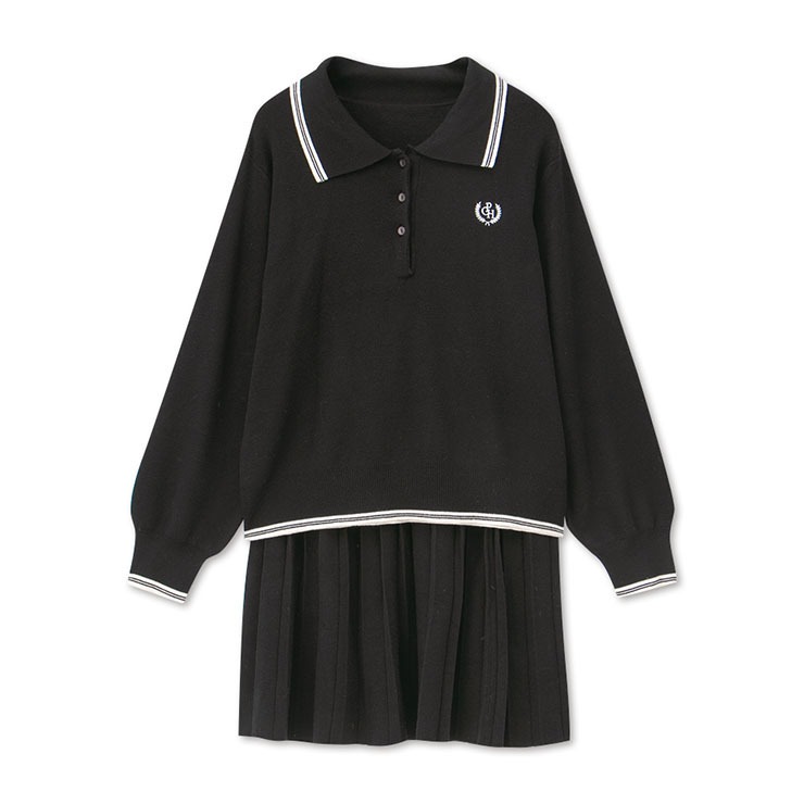 ライン入りポロニット+プリーツニットスカートのセットアップです。
