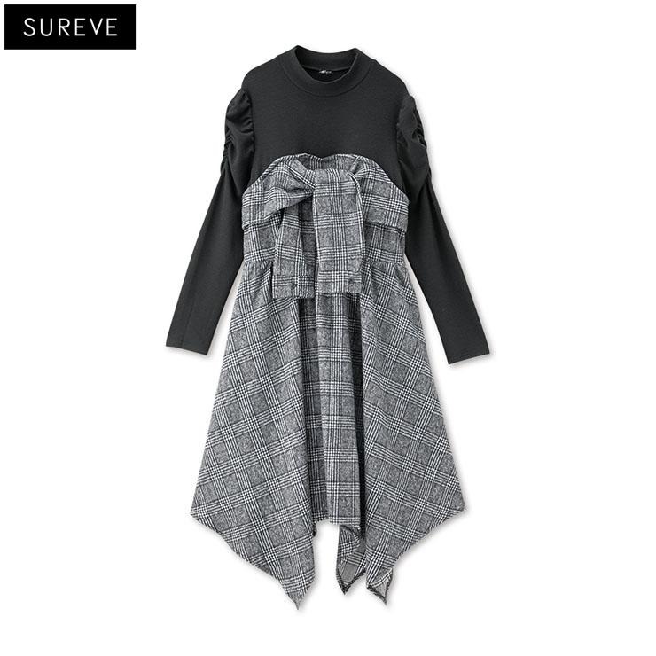 レディース チェック柄ドッキングワンピース(SUREVE)