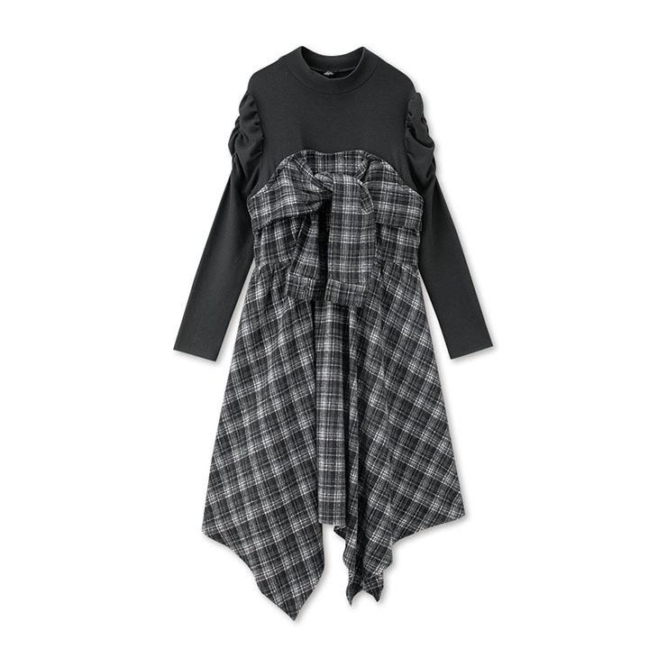 レディース【高身長】 チェック柄ドッキングワンピース(SUREVE)