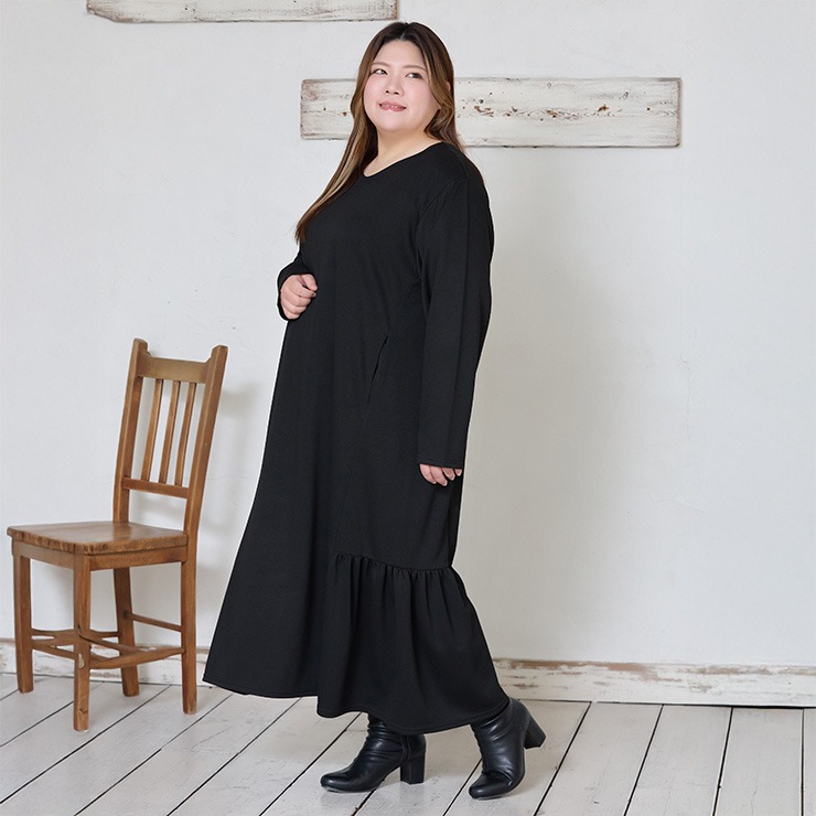 すっきり見えするような両サイドの切替と、サイドの裾にはギャザーフリルデザインでメリハリのあるシルエットに!