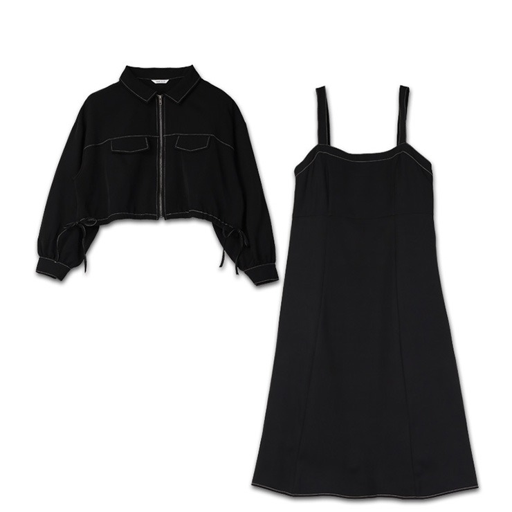 キャミワンピースとショート丈ジャケットのセットアイテム。