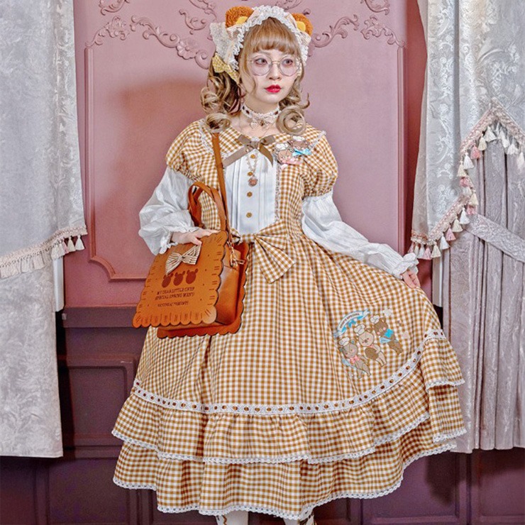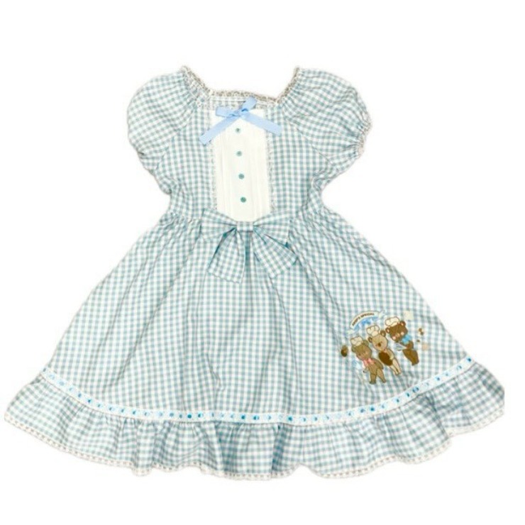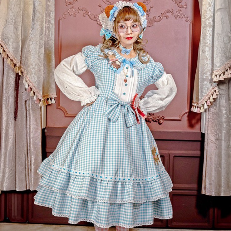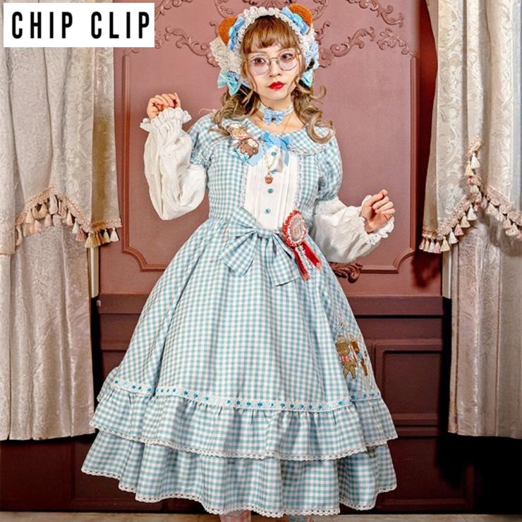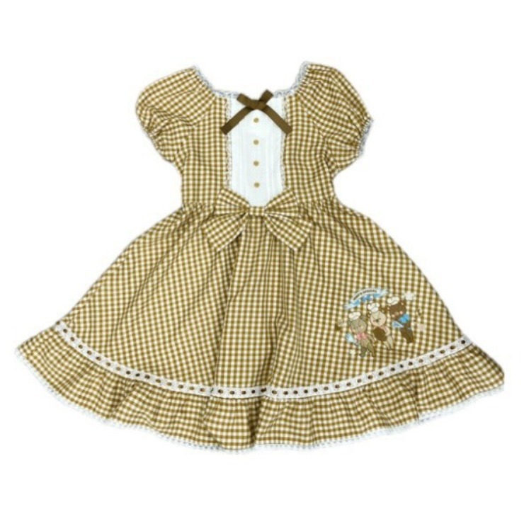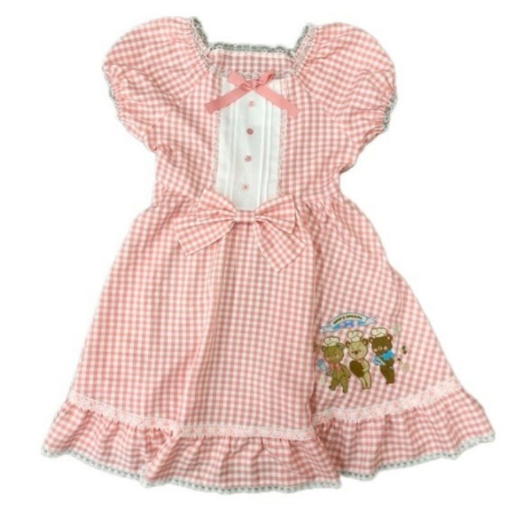 レトロなギンガムチェックに、大きめのリボンとレース使いで甘さをプラス。