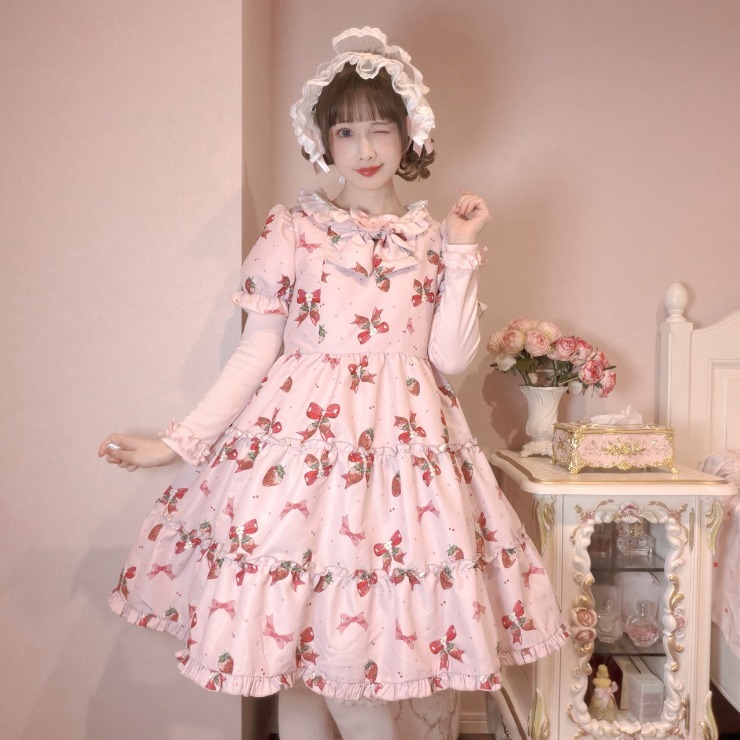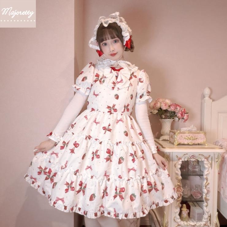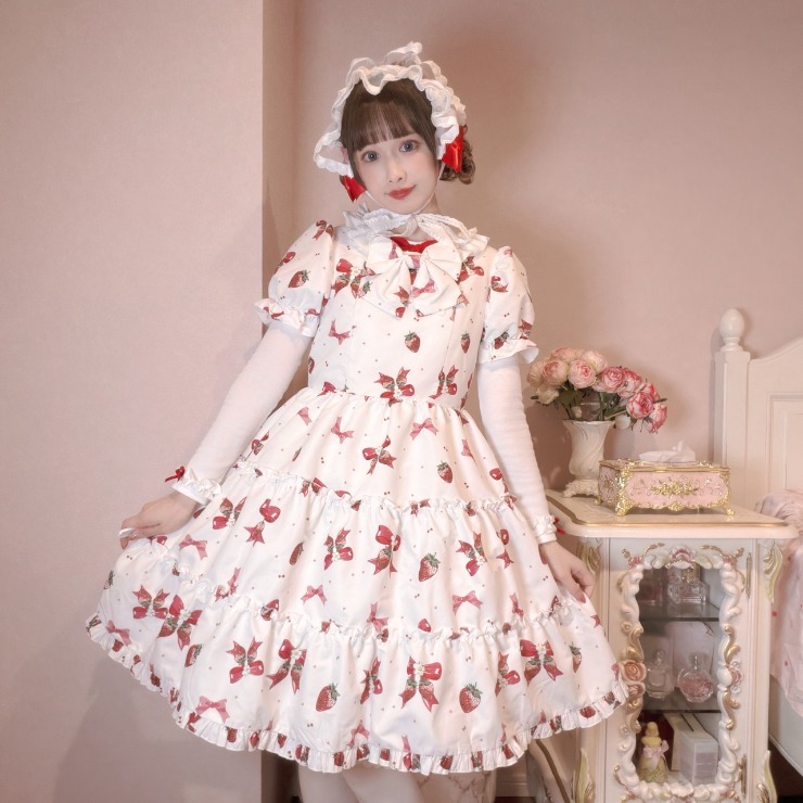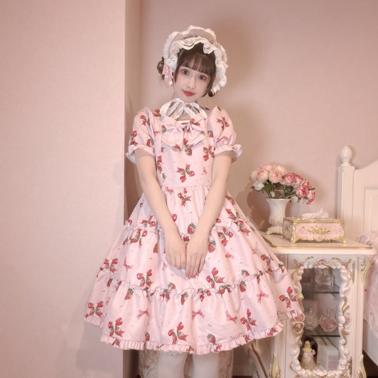 オリジナルのいちごりぼん柄の半袖ワンピース!