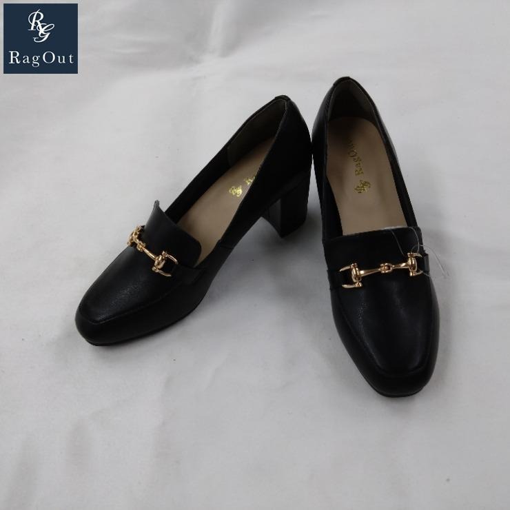 レディース【M~LL】 ビット太ヒールパンプス(Rag Out)