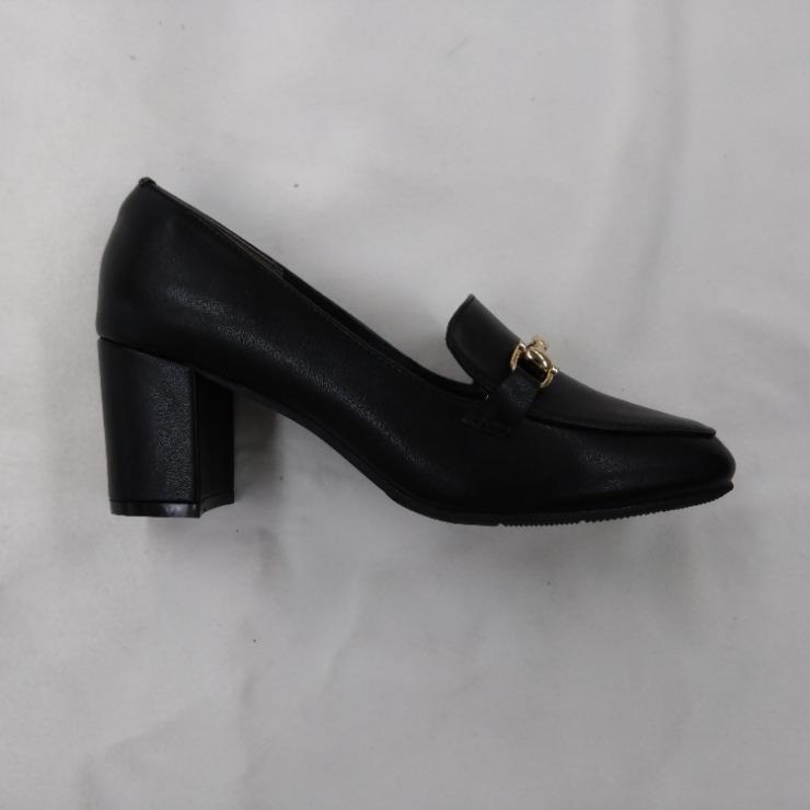 安定感のあるチャンキーヒールのビット付きパンプスです。