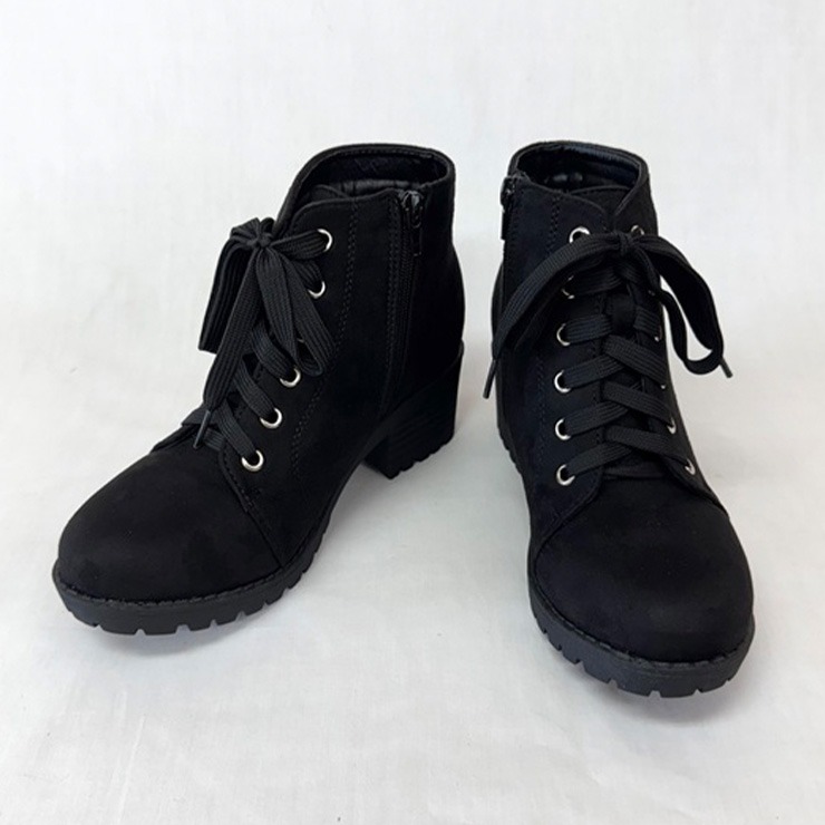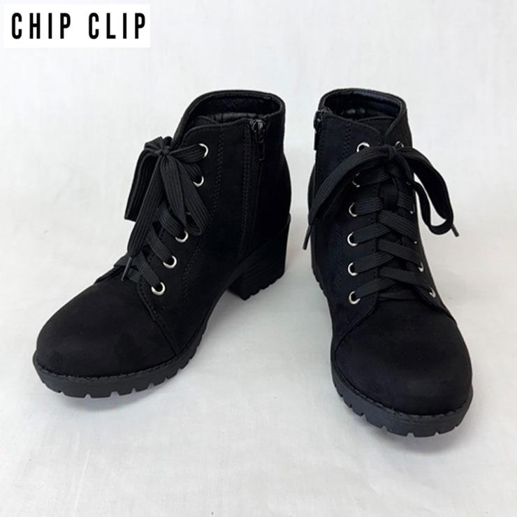 レディース【M~LL】 レースアップショートブーツ(CHIP CLIP)