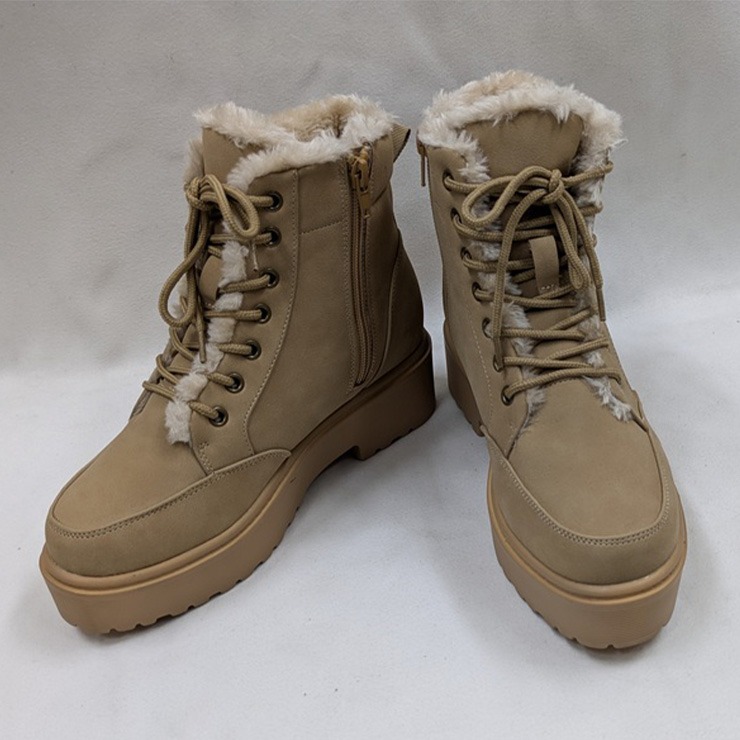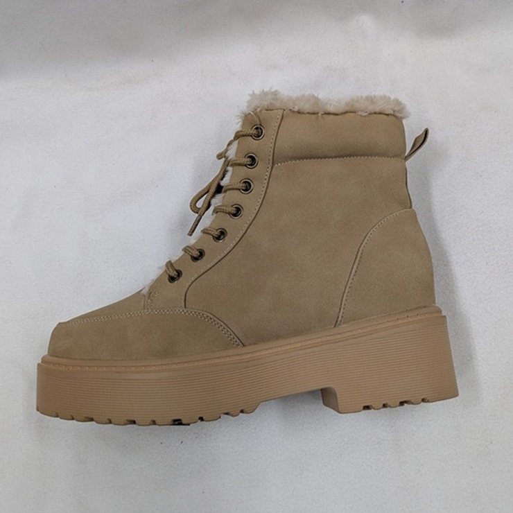 レディース【M~3L】 防滑・裏ボアレースアップショートブーツ
