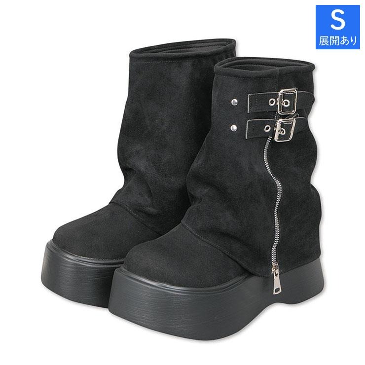 レディース【S~L】 厚底サイドZIPカバーブーツ