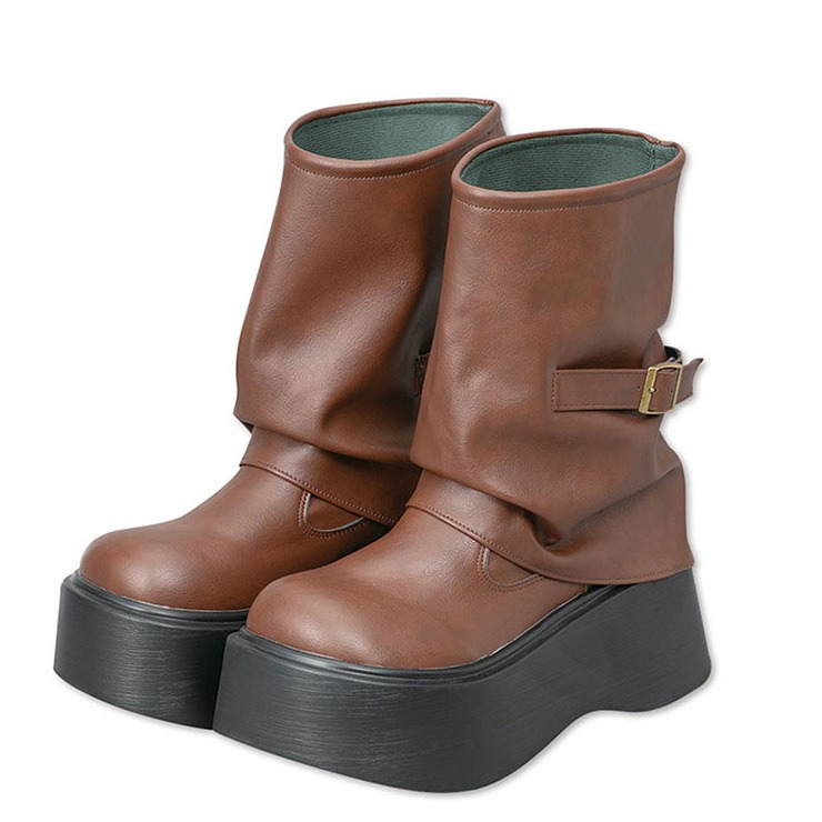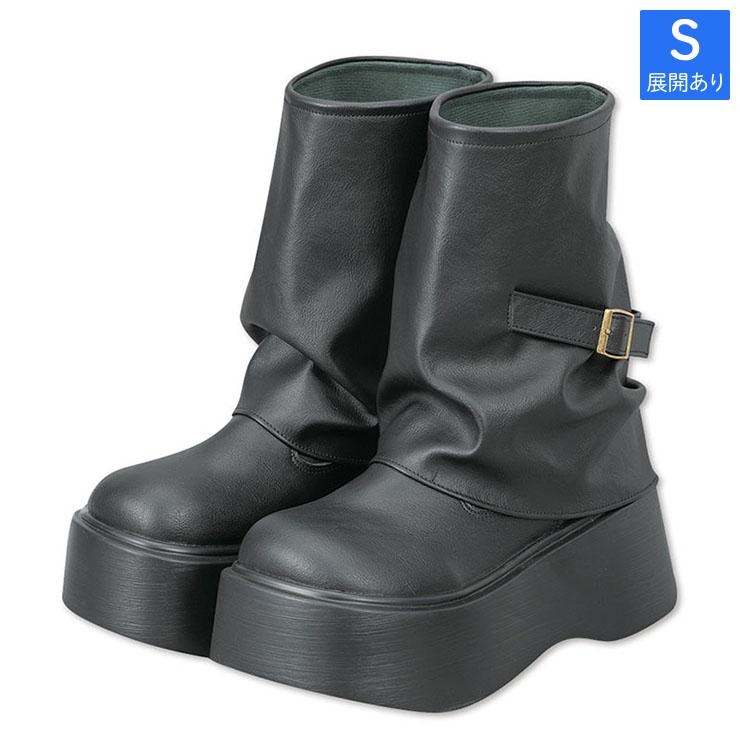レディース【S~L】 厚底サイドベルトカバーブーツ