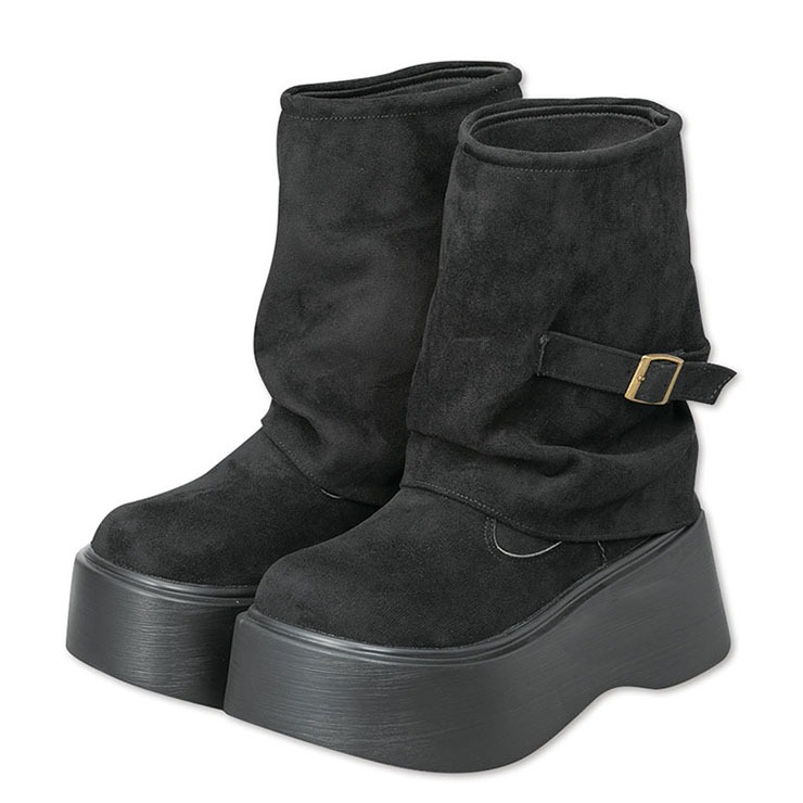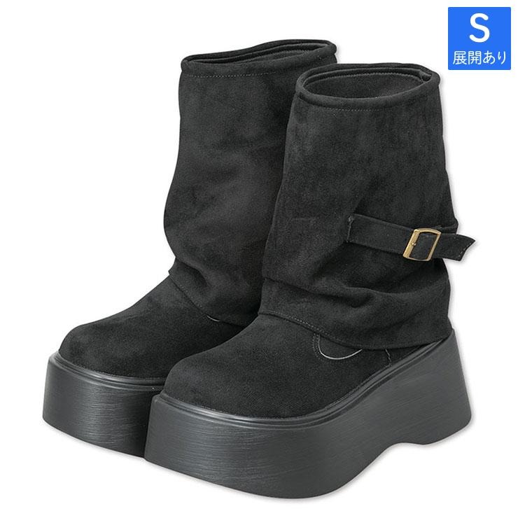 レディース【S~L】 厚底サイドベルトカバーブーツ