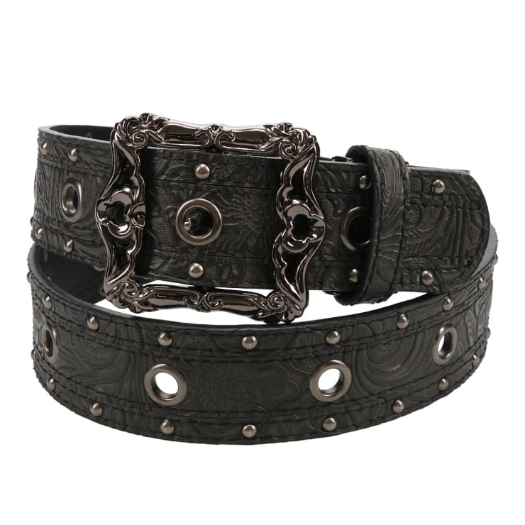 ボタニカルなエンボス加工のカジュアルベルト。