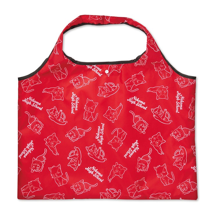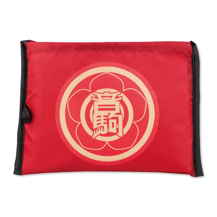 可愛いマスコットキャラがプリントされた収納ポケット付のエコバッグです。ポケットは、スクールバッジ柄です。