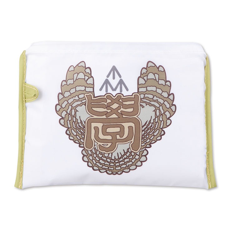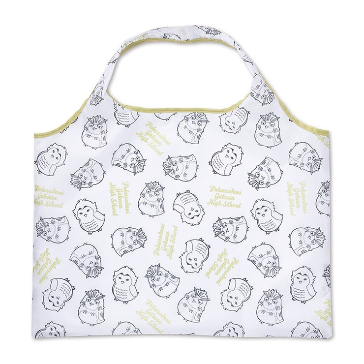 可愛いマスコットキャラがプリントされた収納ポケット付のエコバッグです。ポケットは、スクールバッジ柄です。
