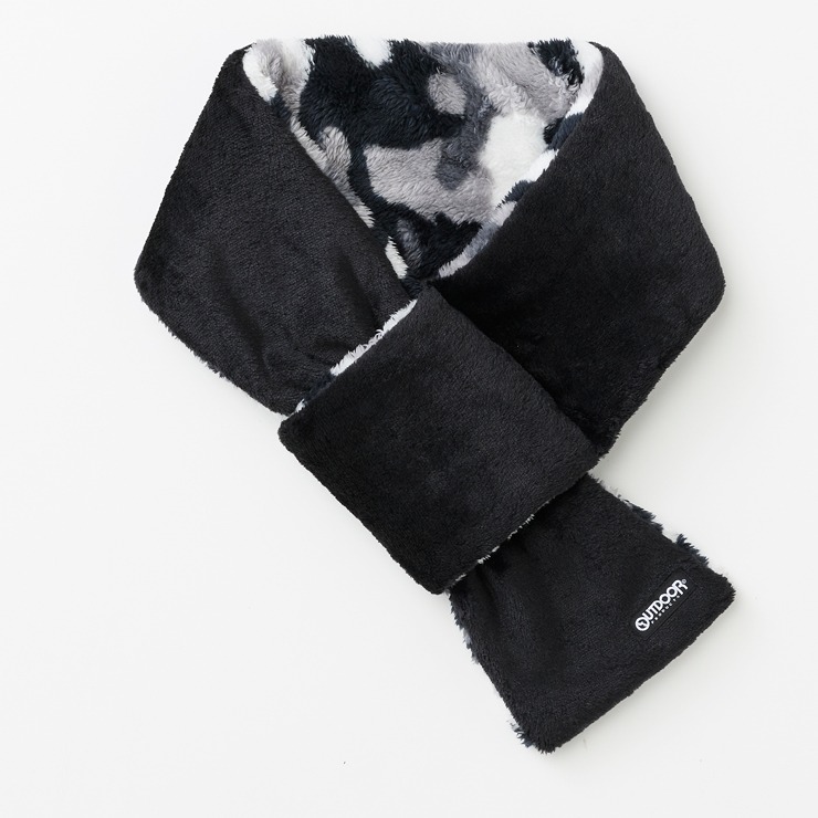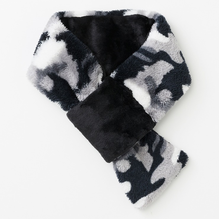 表は無地、裏は迷彩柄で、シンプルかつ、面白味のあるマフラーです。