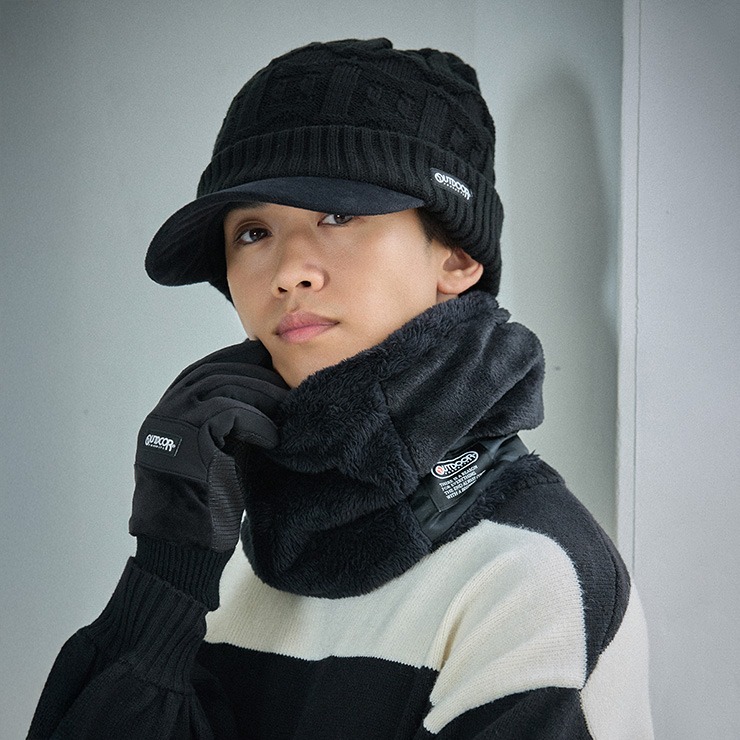 合皮のワッペンを使いカジュアル感のある手袋です。