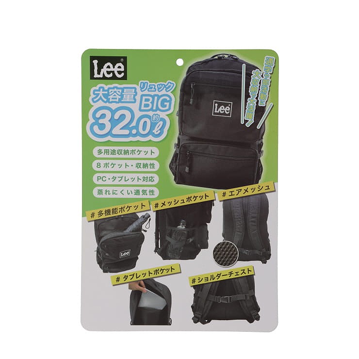 LEEロゴ刺しゅうがアクセントの大容量収納可能なリュックとなります。