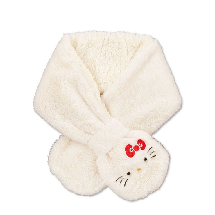 ふわふわ素材に、ハローキティのフェイスが映える、やさしい存在感のティペット。